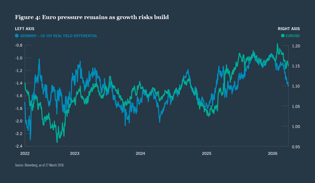 Even if the ECB tightens policy this spring, the euro-dollar is unlikely to recover materially until the geopolitical situation recovers. A modest improvement in ECB rate differentials is insufficient while the uncertainty premium on European assets persists. Increasing euro exposure ahead of a confirmed resolution would be premature, in our view.