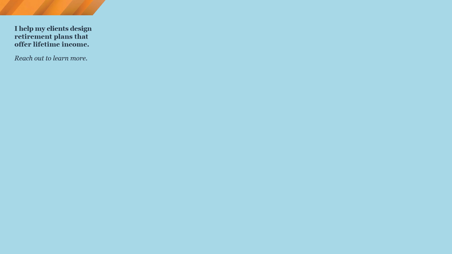 [Copy & paste] Interested in learning more about lifetime income? I am here to help you navigate the evolving retirement landscape. Contact me today!